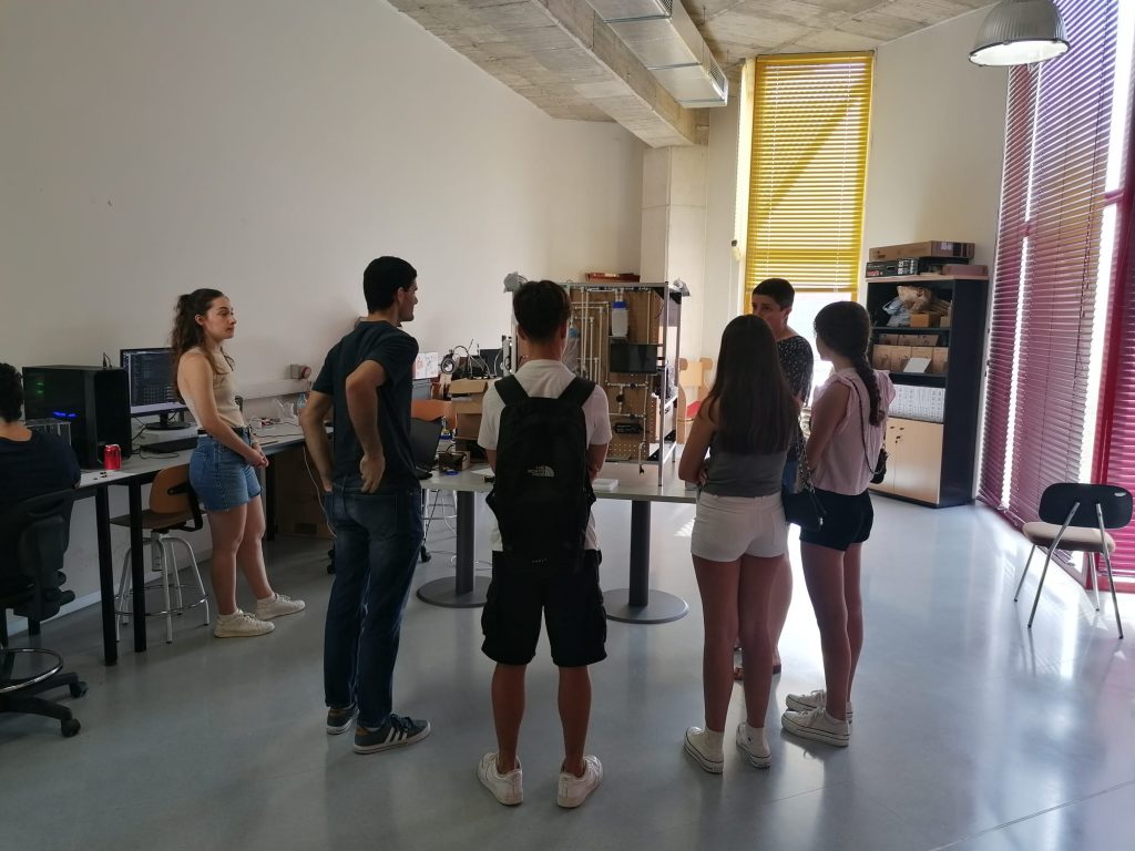 Las alumnas del Bachillerato de Investigación del IES Juan Carlos I, Isabel Molina y María del Mar Dávalos, en compañía de su profesor Juan Sánchez de Biología, han realizado una visita al edificio ELDI de la UPCT, para ver el primer rack de prototipos del proyecto “NEOELECTROQUÍMICA EN FP: Innovación en la Captación de CO2 para la Obtención de Combustibles Verdes y en las Pilas Microbianas”.
