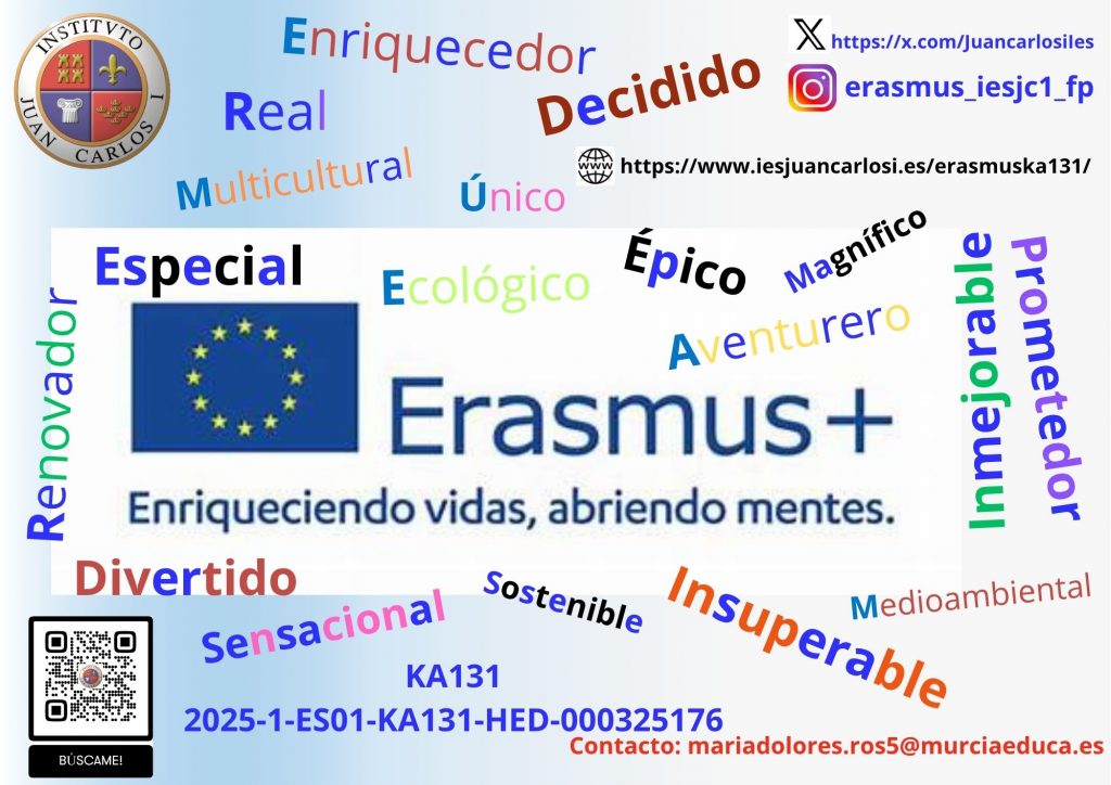 Erasmus + KA131 Descargasy Enlace a Formulario CONVOCATORIA MOVILIDADES ALUMNADO INSTRUCCIONES DE LA CONVOCATORIA ENLACE PARA LA INSCRIPCIÓN ALUMNADO GRADO SUPERIOR K131 Puntuaciones definitivas Erasmus de KA131 CRITERIOS DE SELECCIÓN DE ALUMNADO GRADO SUPERIOR. K131 Tarifas Erasmus+ NORMAS DE FUNCIONAMIENTO DE ERASMUS + DECLARACIÓN JURADA BECA