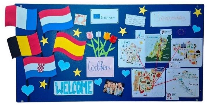 Desde el primer día, el instituto preparó una cálida bienvenida. Los alumnos españoles organizaron actividades de presentación en inglés, diseñadas para romper el hielo y fomentar la interacción entre ellos. El ambiente de cooperación se hizo notar rápidamente: los visitantes croatas mostraron curiosidad por el funcionamiento del centro, las metodologías empleadas en clase y la convivencia multicultural propia de un instituto urbano.
